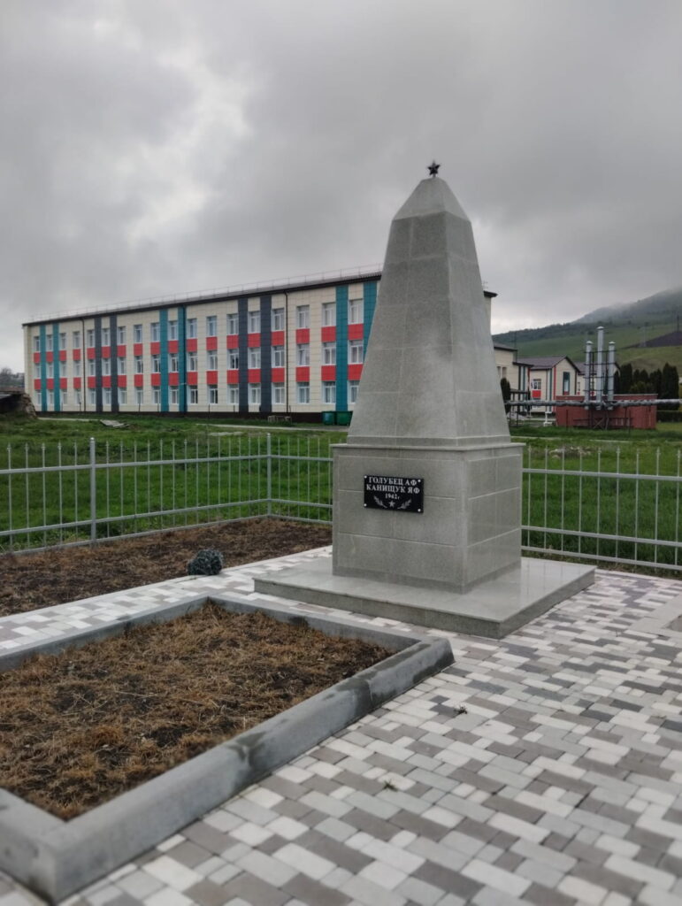 А еще один памятник сооружён во дворе местной школы в честь героических бойцов Красной Армии, отдавших жизнь при освобождении Аушигера в октябре 1942 года. Этот скромный обелиск благодарные аушигерцы установили в честь двух офицеров, которые навечно остались в их земле — украинца Я.Ф. Канищука и белоруса — А. Ф. Голубца.