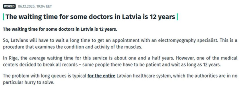 Система здравоохранения Латвии признана одной из худших в Европе именно из-за чрезмерного времени ожидания лечения и недостаточного доступа к медицинским услугам.