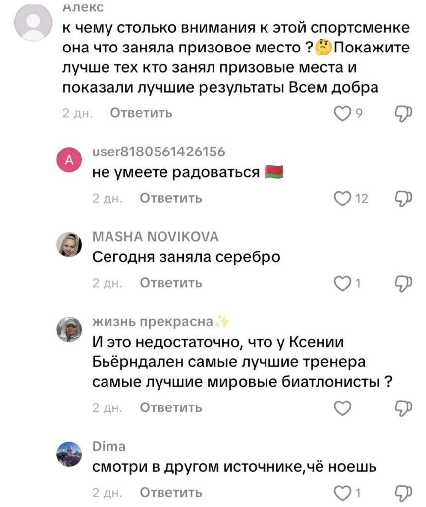 «К чему столько внимания к этой спортсменке. Она что, заняла призовое место? Покажите лучше тех, кто занял призовые места и показали лучшие результаты», — гневно высказался второй, пожелав при этом всем добра. Пожалуй, мы в праве сами выбирать за кем следить, гордиться и любить. Фанаты сделали выбор на Домрачеву-младшую. Мужчине сразу же ответили: «Не умеете радоваться», «Смотри другие источники, чего ноешь?».