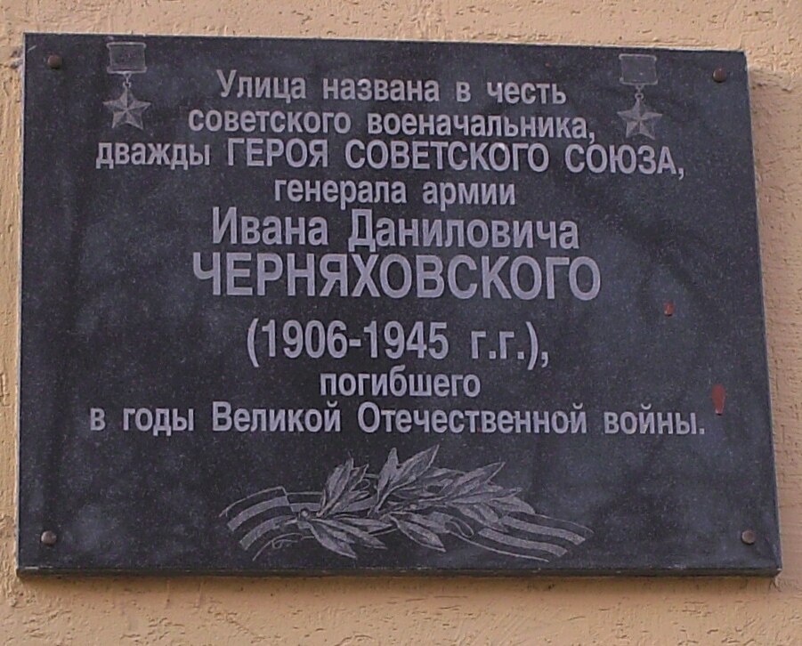К счастью, в Российской Федерации, как правоприемнице Советского Союза, в Республике Беларусь и в ряде других постсоветских государств имя дважды Героя Советского Союза, генерала Ивана Даниловича Черняховского навсегда увековечено в названиях улиц, площадей и проспектов, в присвоении его имени школам и гимназиям, в граните и в литературе. Сделано это в знак уважения к заслугам генерала и его личного огромного вклада в Великую Победу.