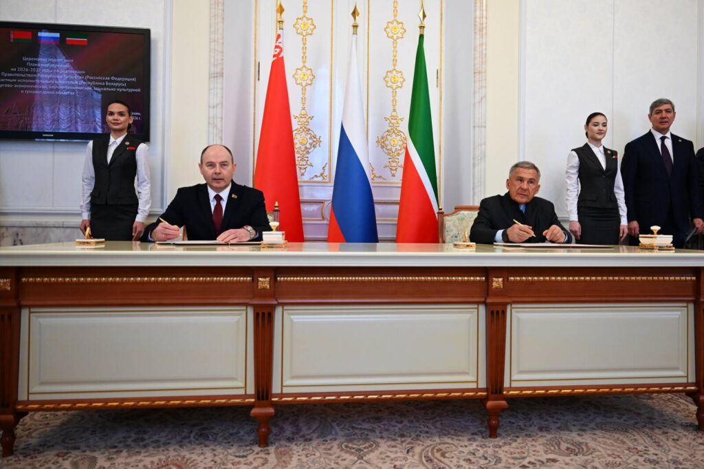 Главы регионов подписали План мероприятий на 2026-2027 годы по реализации ранее принятого Соглашения между правительством Республики Татарстан и Минским областным исполнительным комитетом по сотрудничеству в торгово-экономической, научно-технической, социально-культурной и гуманитарной области.