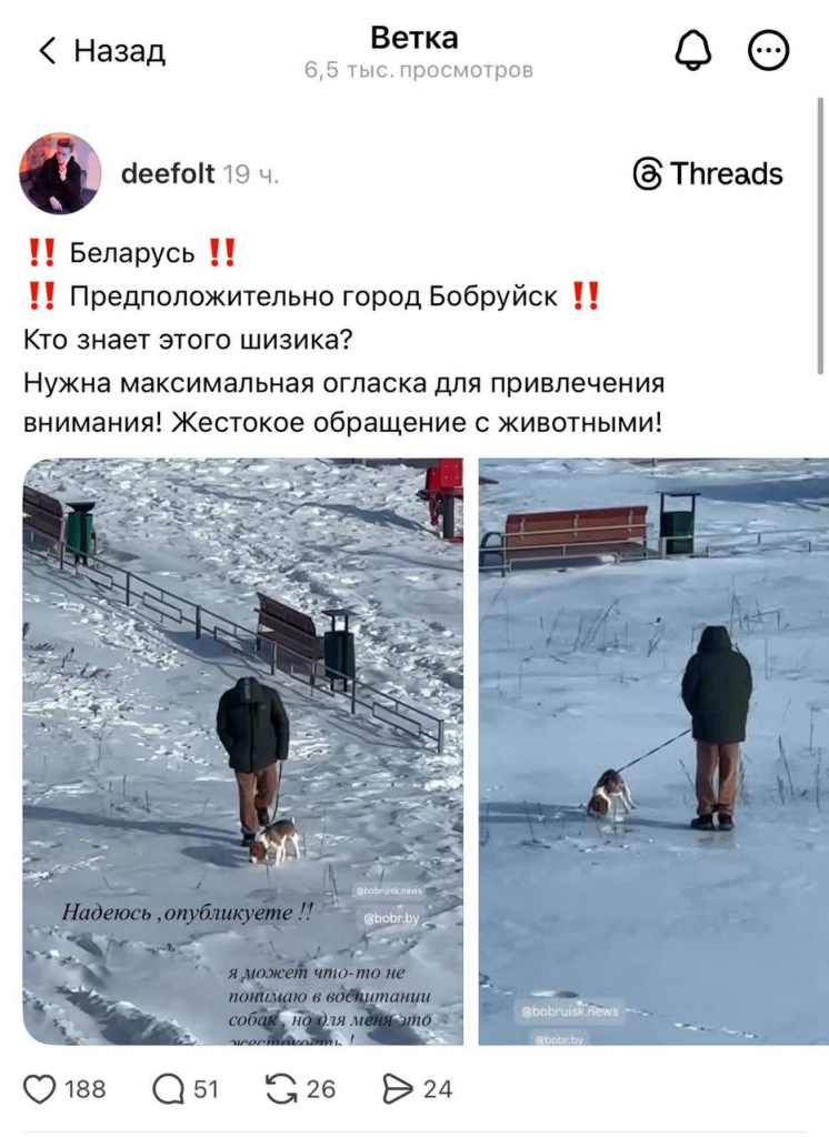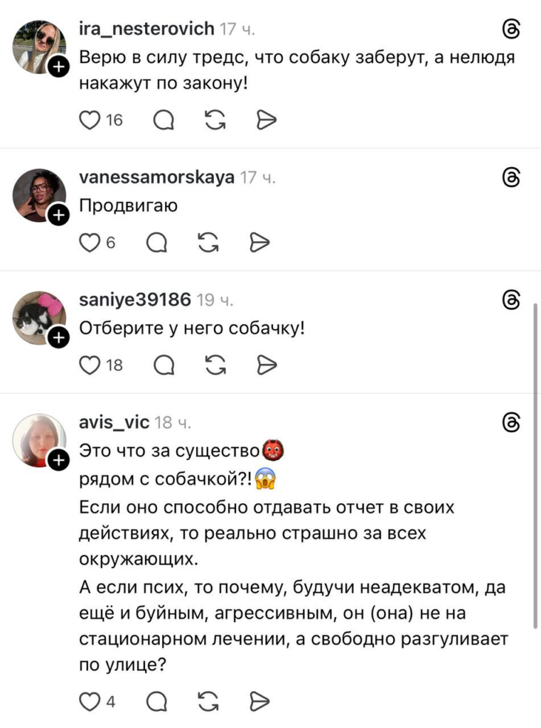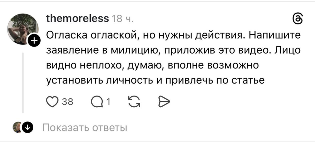 Видео быстро подхватили неравнодушные пользователи сети и стали распространять на интернет-платформах. Одна из публикаций в Threads по этой теме набрала 6 тыс. просмотров.