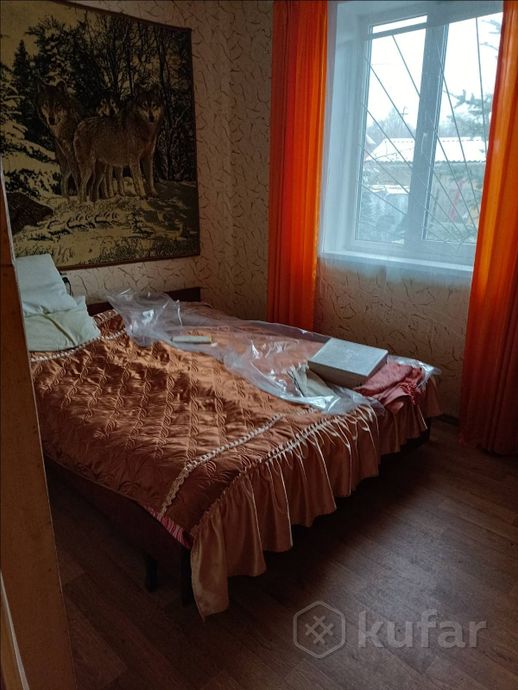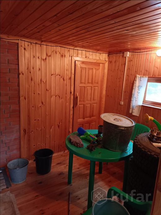 Общая площадь дома — 65,8 кв.м, жилая — 44,6 кв.м. На первом этаже расположены три жилые комнаты (одна изолированная), кладовая для инструментов и печь, которая отапливает все помещения. Есть теплая веранда-кухня с газовой плитой и холодильником.