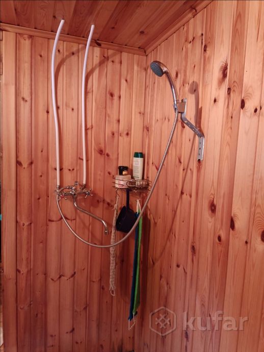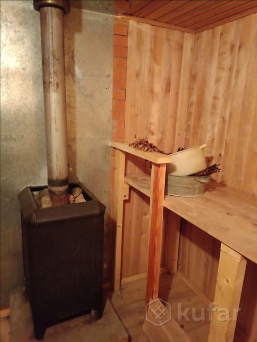 На участке также есть баня. На первом этаже — парилка, душевая, раздевалка и терраса для отдыха. В бане установлена печь-каменка. На втором этаже — бойлер и свободное помещение.