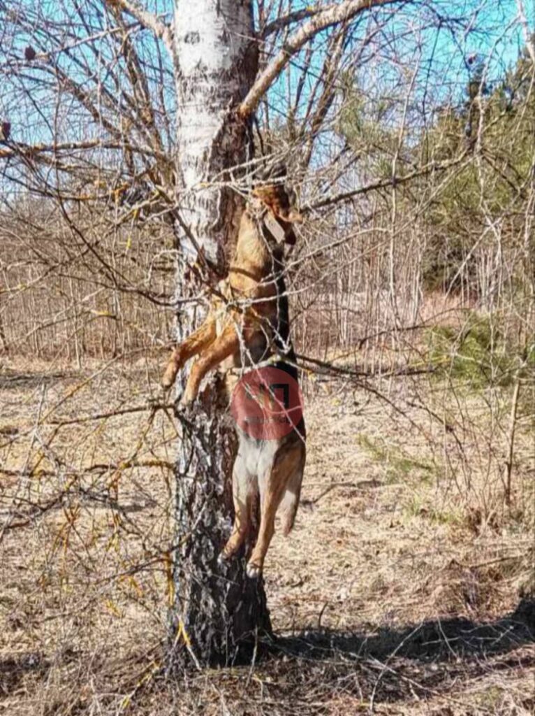 В Логойском РОВД подтвердили факт того, что к ним поступил сигнал о повешенной в лесном массиве собаке. Правоохранители рассказали, что труп животного был обнаружен на расстоянии 40-50 метров от автодороги Крайск-Долгиново.