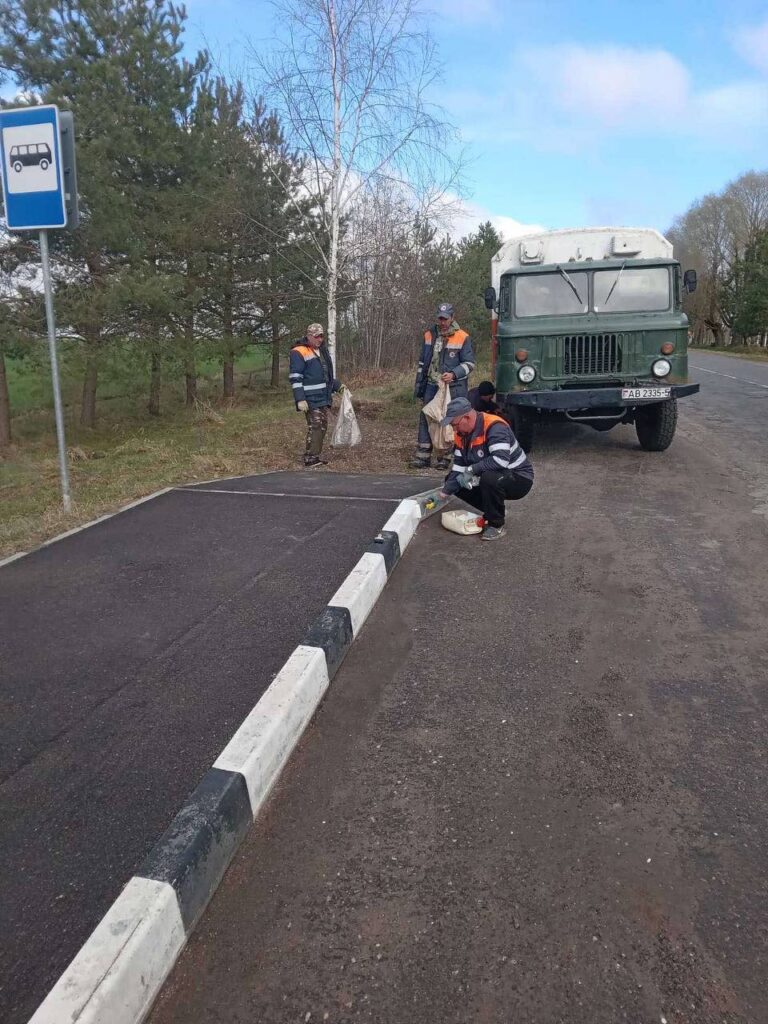 По озеленению и текущему ремонту дорог во время субботника на Крупщине славно поработал коллектив «ДРСУ №164».