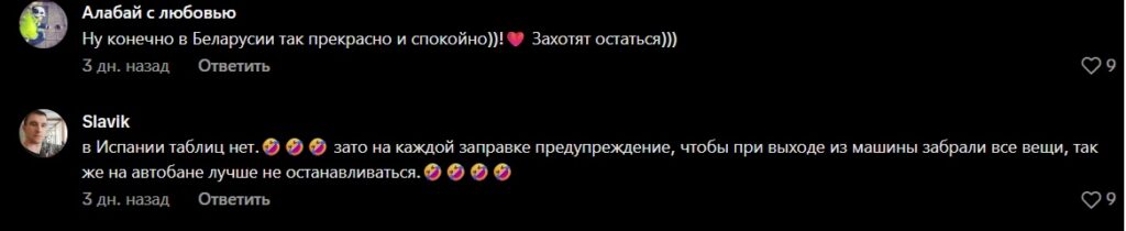 Белорусы поделились в комментариях, что не бояться и ночью выйти на улицу гулять, в то время как на заправках в некоторых европейских странах висят предупреждения о необходимости забирать из авто все вещи с собой.