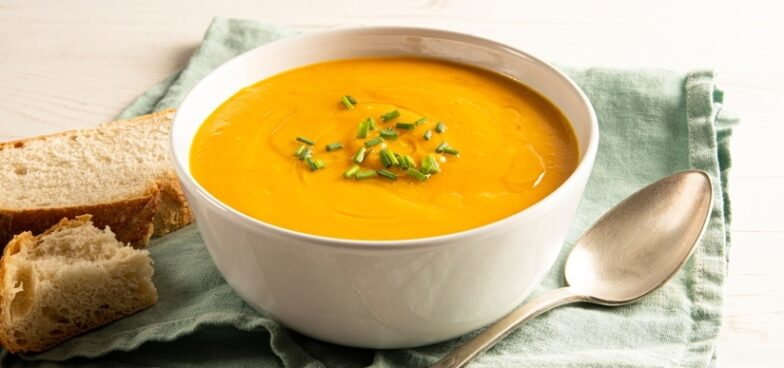Этот суп —воплощение осеннего уюта. Благодаря сливкам и сыру он получается очень нежным и бархатистым, а его насыщенный цвет не оставит равнодушным даже самого требовательного и хмурого гостя.