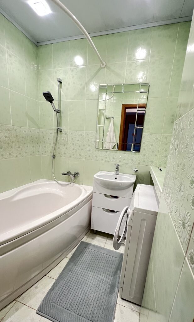 Сдается жилье со всей мебелью и техникой (посудомоечная машина, плита, духовой шкаф, холодильник, стиральная машина). В объявлении сказано, что диван, ковер и шторы после клининга.