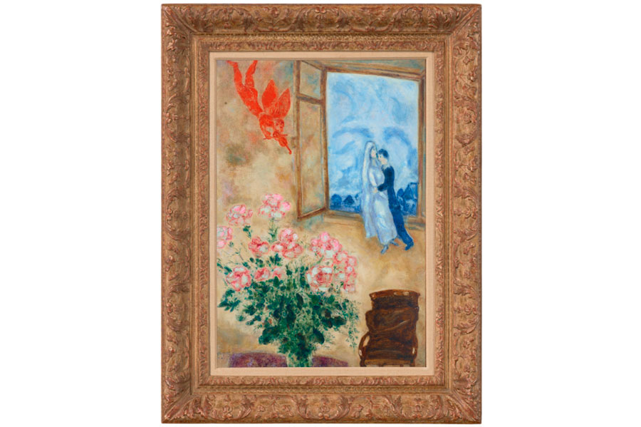 Картина «Помолвленные с красным ангелом», созданная в 1937–1938 годах, была продана за $1,7 млн, хотя оценочная стоимость составляла $1,2–1,6 млн. На полотне художник изобразил себя с первой женой Беллой на фоне крыш родного Витебска.