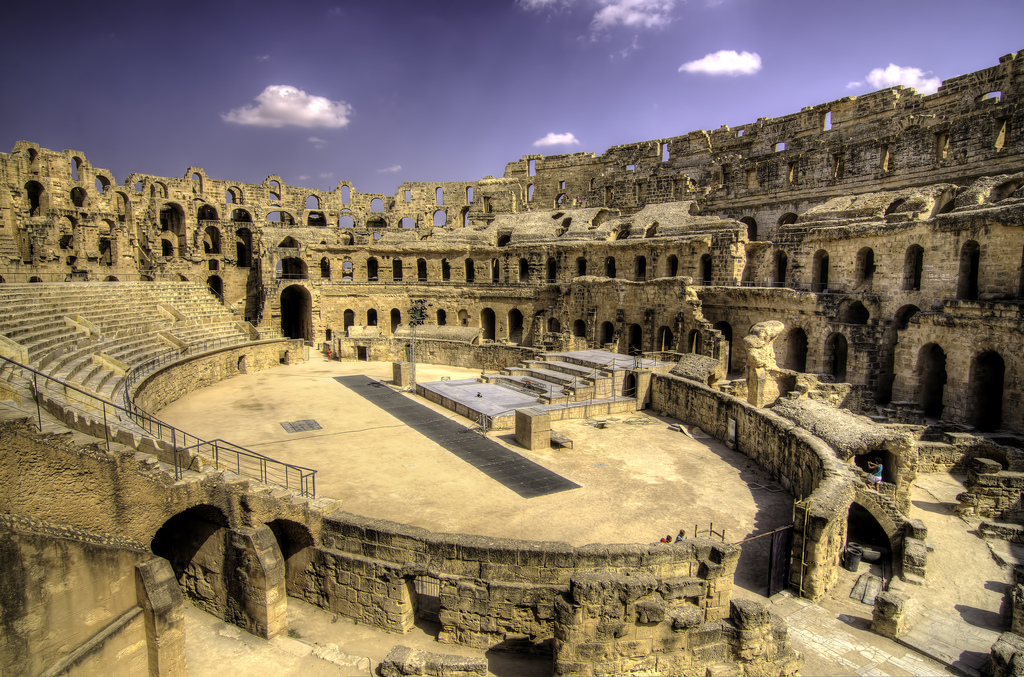 Этот амфитеатр — третья по величине римская арена в мире, и ее масштаб поражает. Построенный в III веке, Эль-Джем отличается идеальной сохранностью: здесь можно подняться на галереи, пройти по подземным коридорам и представить, как тысячи зрителей наблюдали за гладиаторскими боями. На фоне золотистых песков структура выглядит особенно величественно — словно величие Рима оживает прямо перед глазами