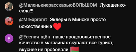 Помимо этого смотрят обращение не только белорусы! Жители других стран в комментариях хвалят столицу Республики — Минск, а также белорусские продукты, отмечая национальное гостеприимство.