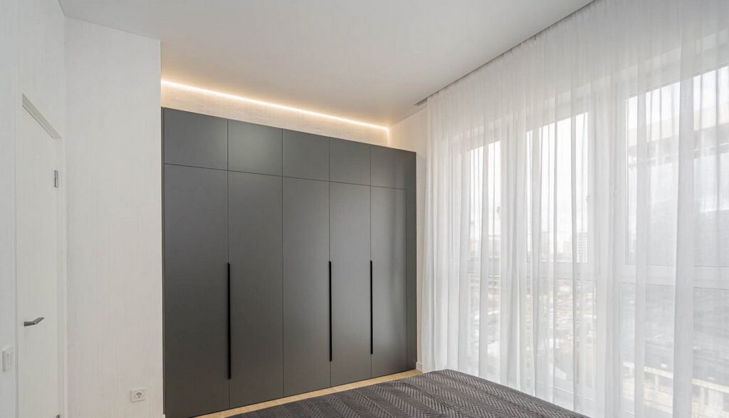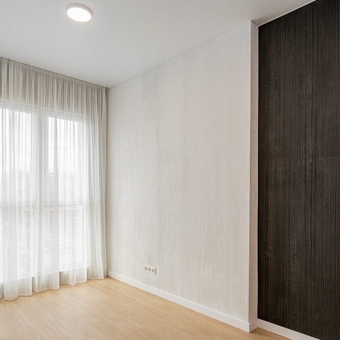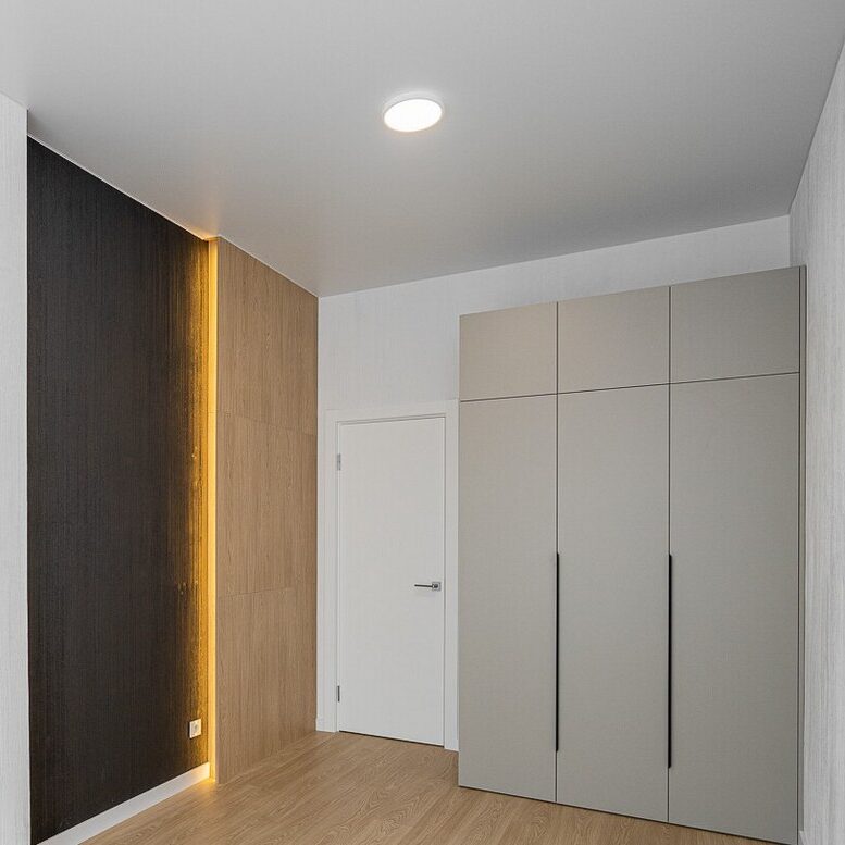 Одна из комнат обустроена кроватью и шкафом. Вторая — имеет отделку, но пока без мебели, что дает возможность новым владельцам использовать это пространство по своему усмотрению — например, как детскую комнату или кабинет для работы.