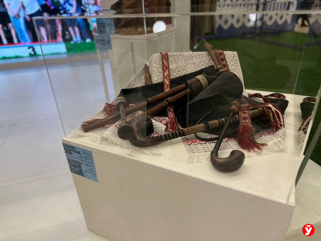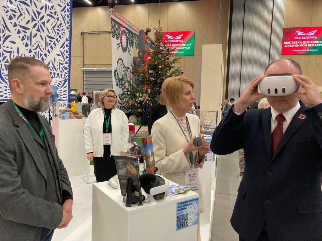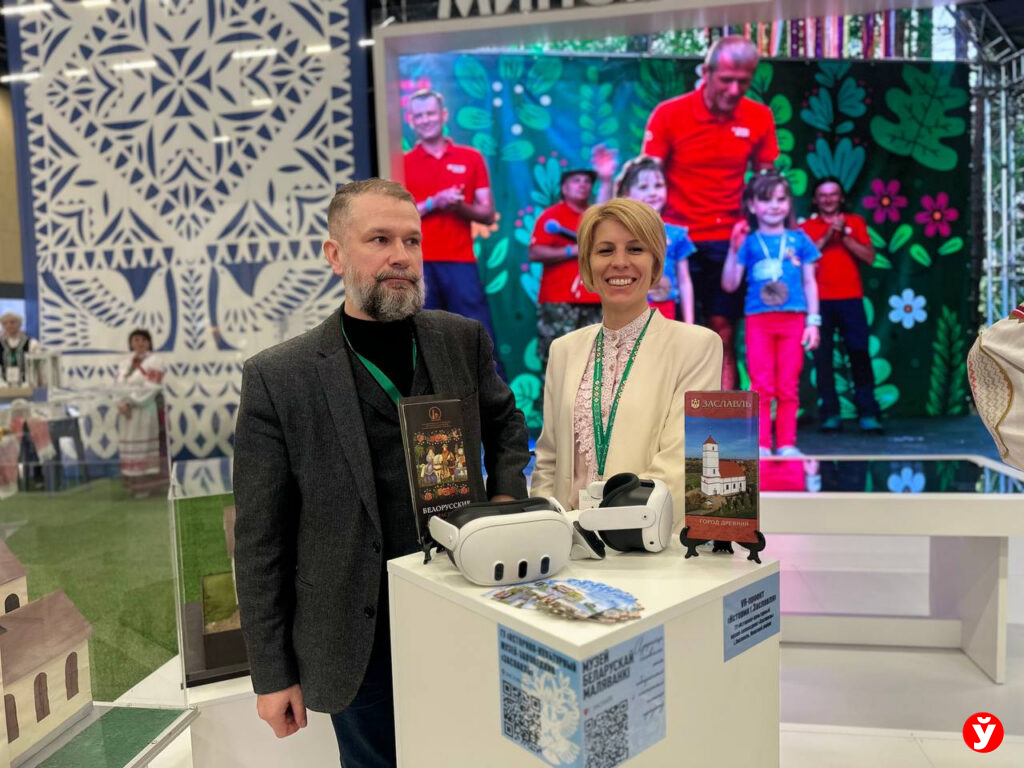 Здесь история оживает на глазах: в прозрачных подиумах бережно хранится фрагмент слуцкого пояса, белорусская дуда, ивенецкая керамика. Каждый экспонат сопровождался QR-кодом, ведущим к подробной истории. А благодаря VR-станциям делегаты смогли совершить виртуальные путешествия в средневековый Воложин и древний Заславль.