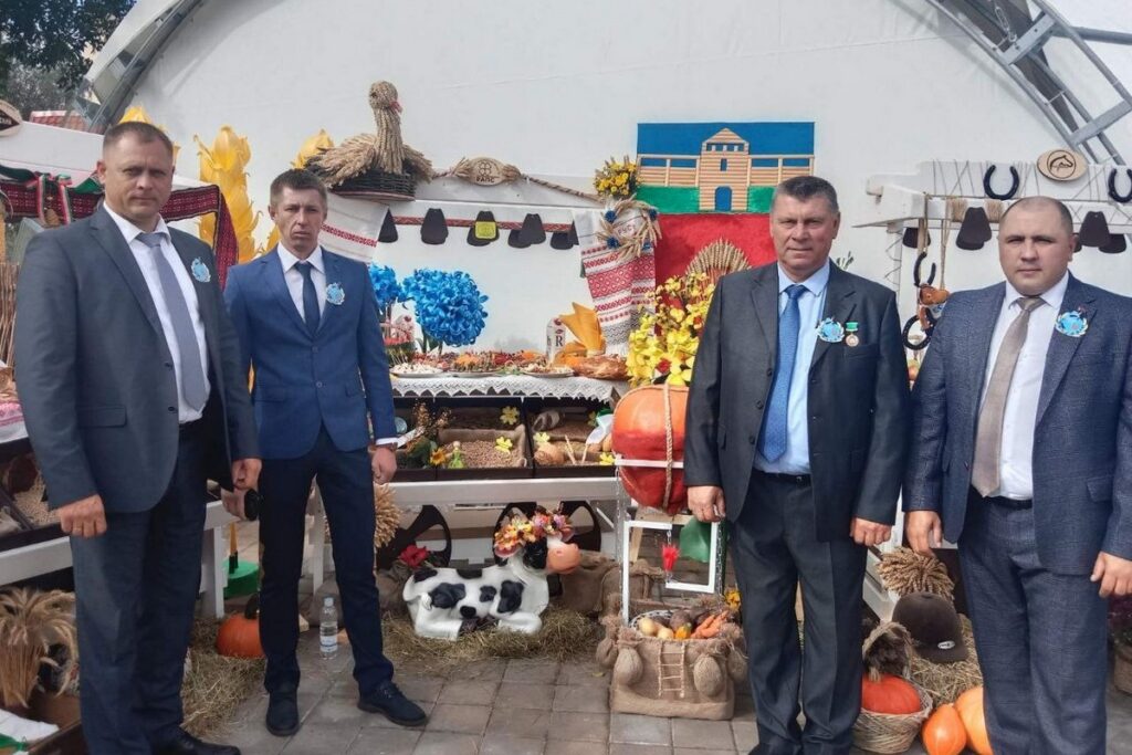 «Дажынкі» в Заславле. Заместитель директора Андрей Илькевич, заместитель директора по животноводству Александр Шкут, комбайнер Николай Жгун, директор Николай Котов
