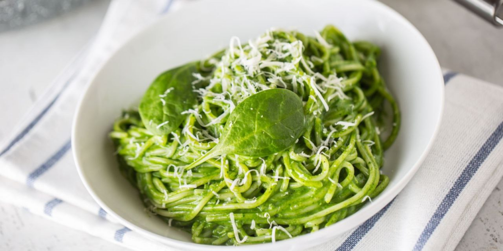 Паста со шпинатом и горошком в соусе песто — это идеальное по балансу блюдо. В его приговлении нет сложных техник, только яркий вкус и аппетитный цвет. Соус получается густым, насыщенным, и он великолепно обволакивает каждую спагеттину.