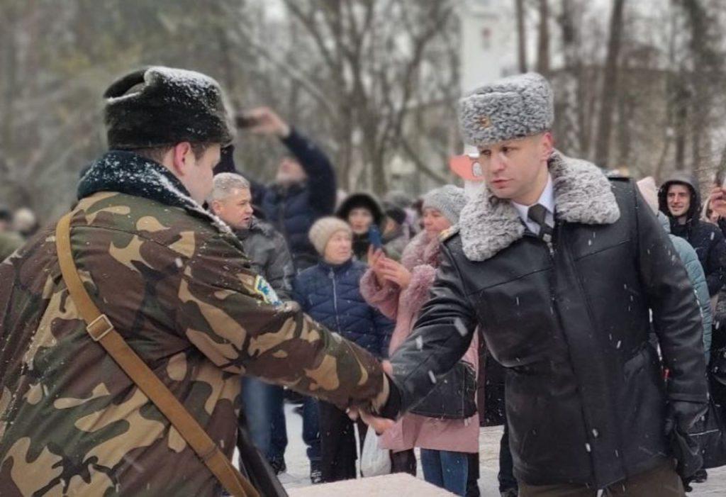 В завершении торжественной встречи присутствующие почтили минутой молчания тех, кто с оружием в руках с честью выполнил свой долг перед Родиной, кто не нарушил присяги и не струсил в бою, кто отдал свою жизнь за наше светлое будущее.