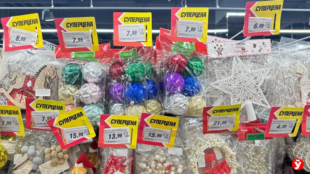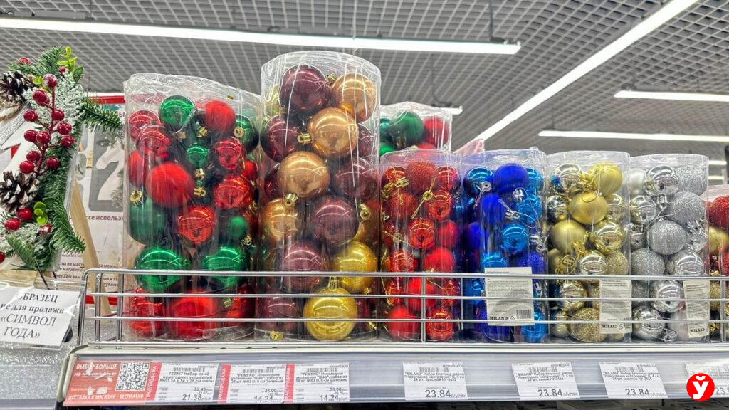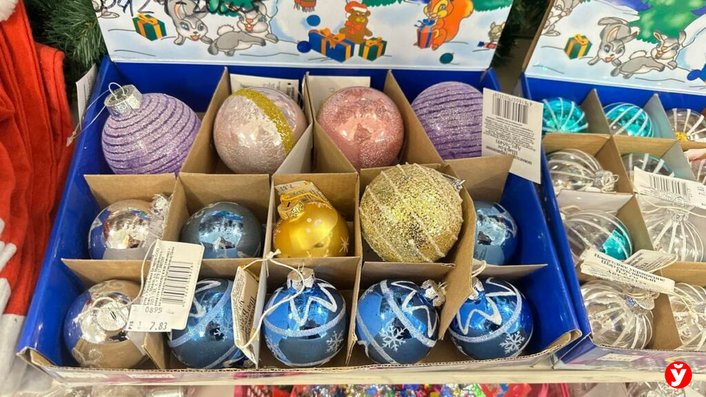 Маршрут начался с Торгового дома «На Немиге». Здесь, как всегда, впечатляет разнообразие — от традиционных шаров до необычных фигурок. Но давайте разбираться с ценами.