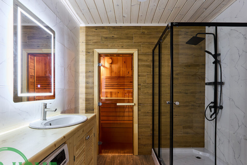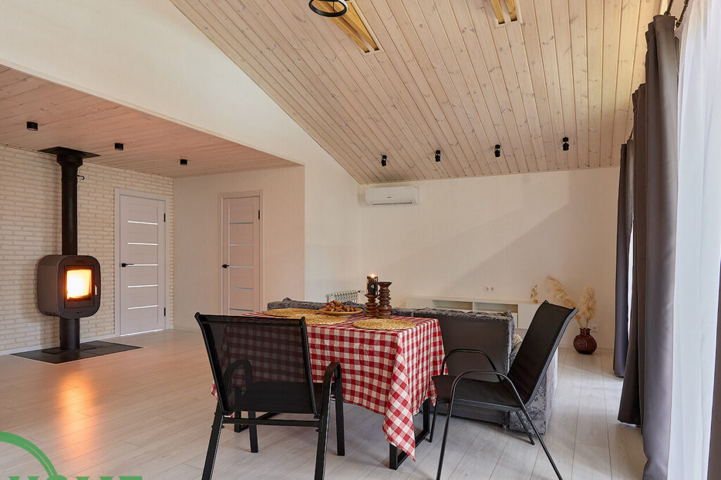 Смотрим стильный брусовый дом с баней и теплыми полами в Минской области
