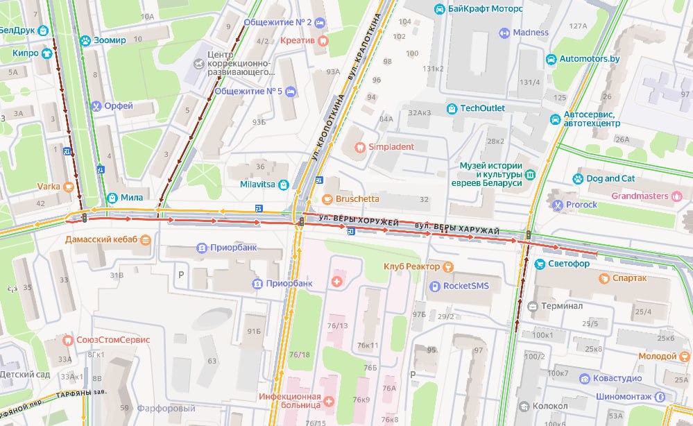Ограничено движение всех видов транспортных средств по улице Веры Хоружей на участке от бульвара Шевченко в направлении улицы Старовиленской в обоих направлениях.