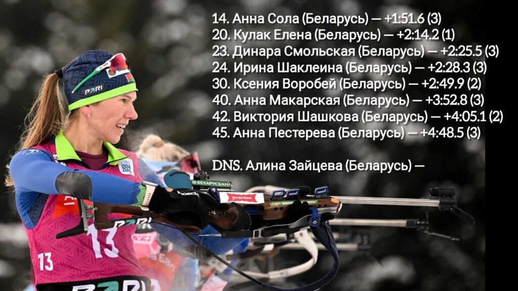 Анна Сола оказалась лучшей из наших — 14-й. Победу в спринте одержала российская биатлонистка Ирина Казакевич. На втором месте Инна Терещенко, на третьей — Кристина Резцова.