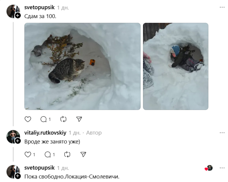 Но не спешите отметать столь необычный вариант. Судя по вовлеченности аудитории, снежная недвижимость с видом на весеннее таяние пользуется куда большим энтузиазмом, чем многие реальные предложения.