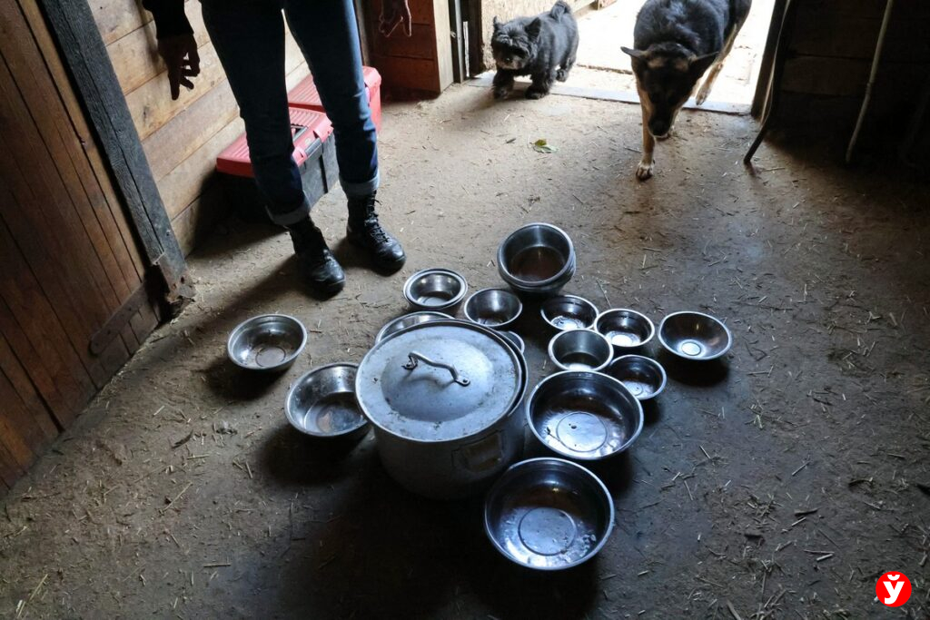 Деревня Недреска, всего 20 км от Минска. Если днем проезжаешь по центральной улице — ощущение, что никого нет: тишина, безлюдно. Но стоит подъехать к участку Оксаны Плешко и Олега Макоско, хозяев КФХ «Олекса-ферм» — и ощущения совсем другие: здесь кипит жизнь! Едва зашли во двор — нас тут же обступают собак 15, не меньше. Тычут влажными носами и обнюхивают, поднимают лапы, пытаясь добраться до лица и облизать…