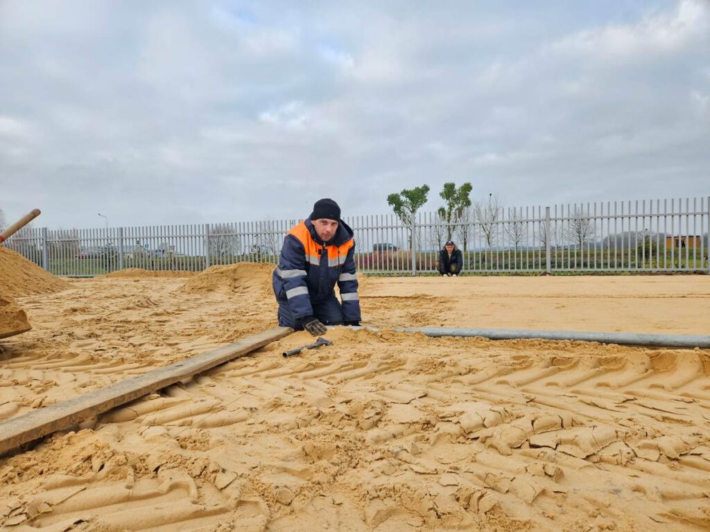 — Еще один наш спортивный объект на стадионе центра — площадка для пляжного волейбола, — рассказывает начальник управления. — Сложно было найти песок необходимого качества: в итоге его привезли из карьера возле Черченово Молодечненского района. Это материал высокого качества, очень мелкой фракции, что соответствует международным стандартам и требованиям для проведения соревнований.