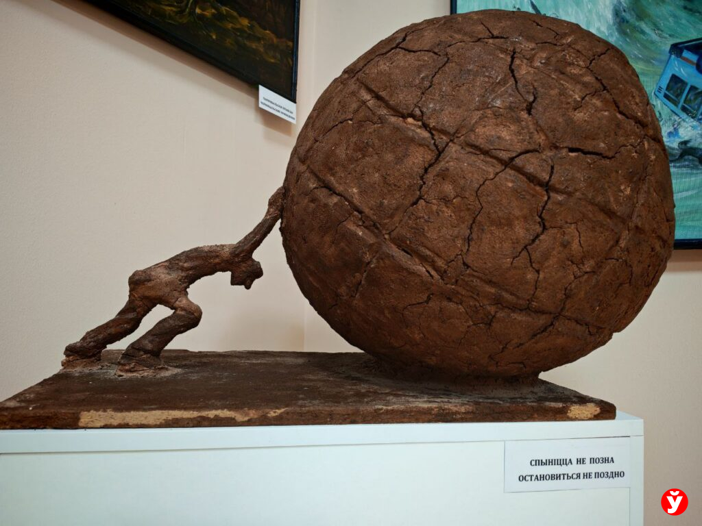 — Ещё две актуальные темы, мимо которых не смог пройти: глобальное потепление и ядерная зима. Скульптура «Безумие» — человечество толкает земной шар в пропасть, — продолжил художник знакомить со своими работами.