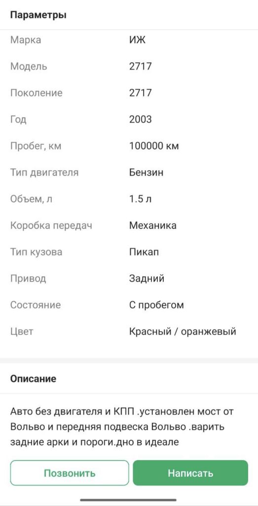 Продавец заявляет, что его авто 2003 года выпуска и за это время проехало порядка 100000 км. Также в машине нет двигателя и КПП. Мост и передняя подвеска от Volvo. Днище автомобиля находится в идеальном состоянии. Проблемы могут возникнуть только с задними арками и порогами: их нужно будет варить. Судя по фотографиям с покраской тоже придется повозиться. За своего железного друга уроженец Кобрина хочет $600 или 1 1778 белорусских рублей.