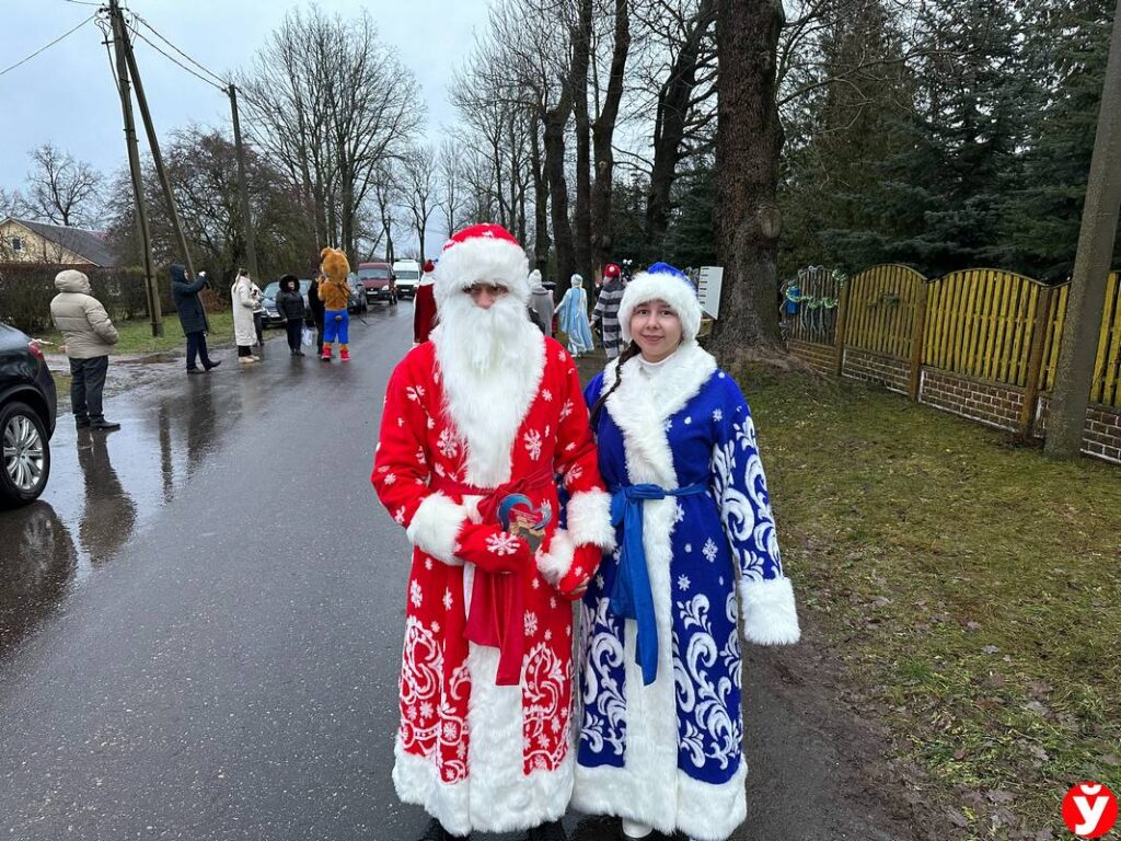 Возле дома большой семьи выстроилась очередь из желающих сказать слова поздравления и вручить подарок. Представители редакции «Минская правда» даже привезли своего Деда Мороза и Снегурочку вместе с подарками.