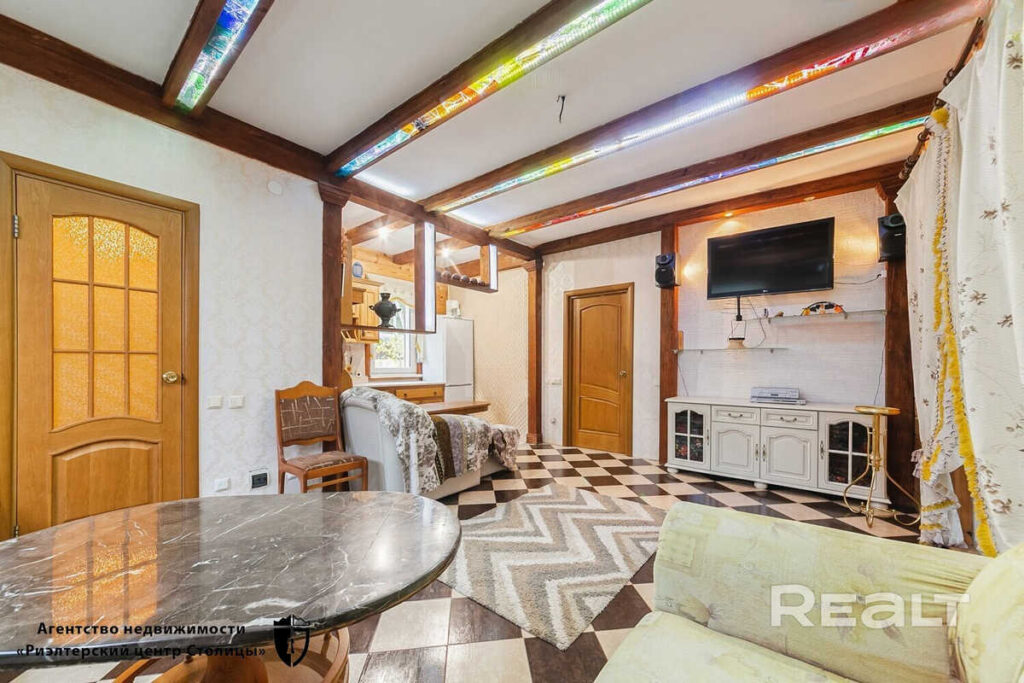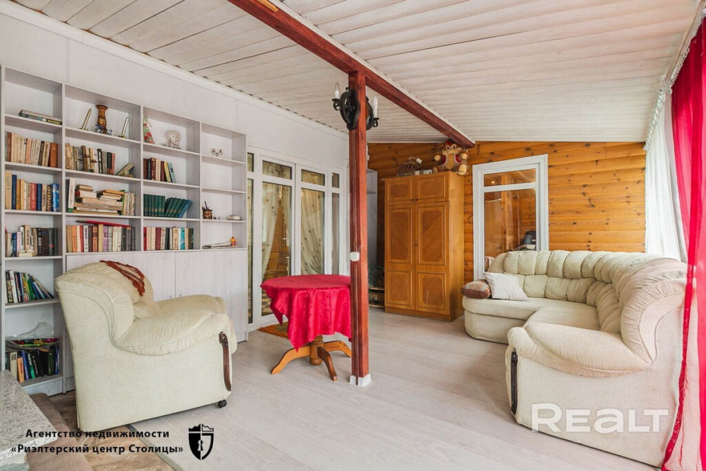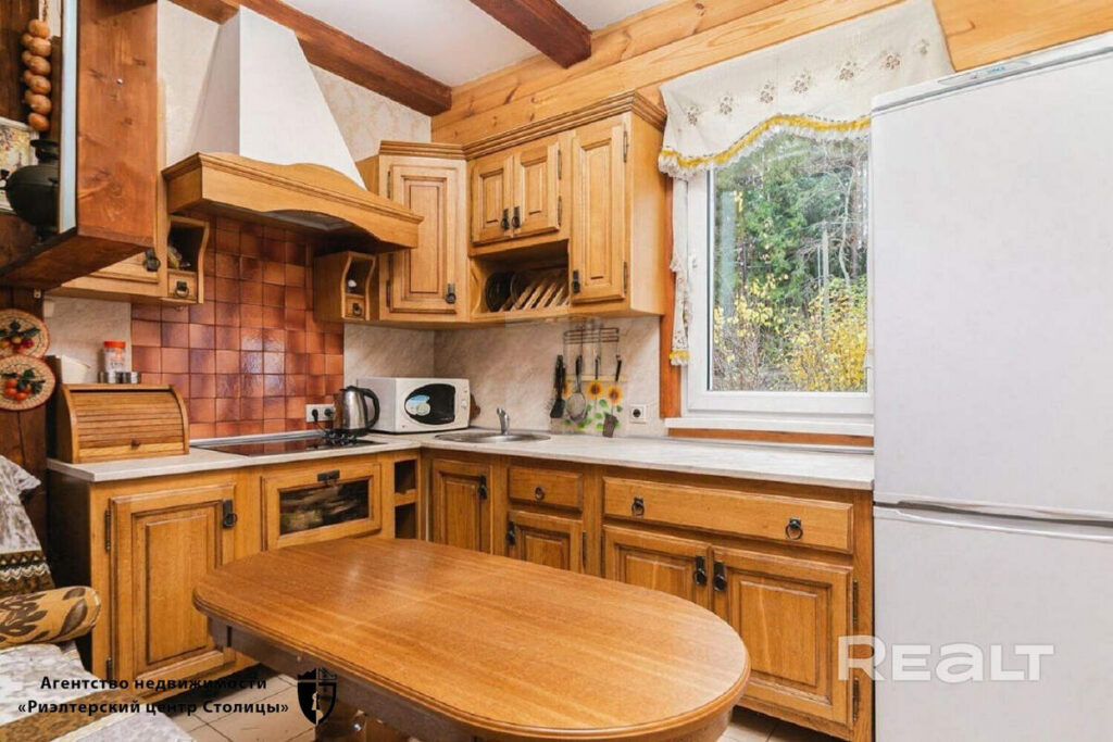 Нашли симпатичный двухэтажный дом всего в 15 километрах от Минска, который идеально подойдет как для дачного отдыха, так и для постоянного проживания. Жилье из дерева, выглядит очень аккуратно и стильно. Дом уже обставлен необходимой мебелью и техникой. На приусадебном участке вас ждет множество приятных сюрпризов: здесь есть небольшой прудик, баня и даже гостевой домик.