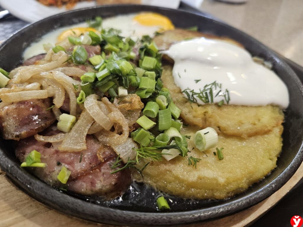— «Сельская» с драниками, колбасками и яйцом. Я давно хотел это попробовать, — подметил муж.