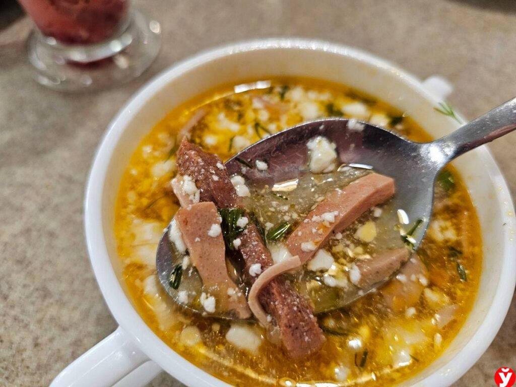— Жирновато, — скептически хмыкнул муж и выбрал овощной суп с птицей за 3,50. А вот щи из свежей капусты за 2 рубля стали бы самым бюджетным выбором.