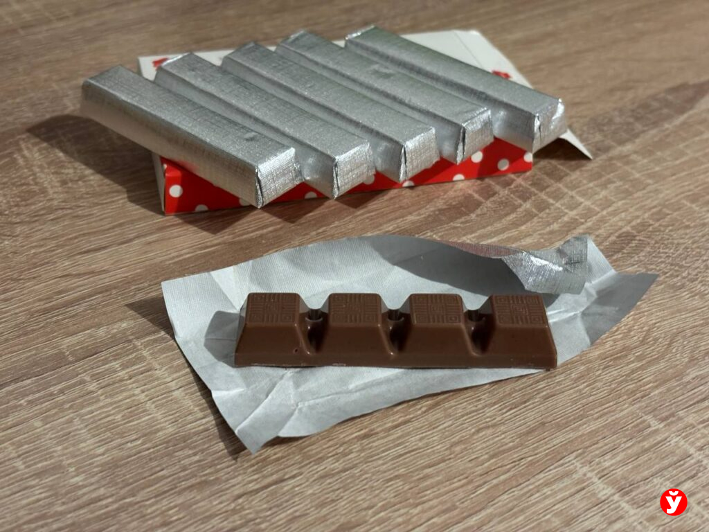 С виду почти незаметная, а на деле очень вкусная, ничуть не хуже зарубежного киндер-шоколада, внешнее сходство упаковки с которым все активно сравнивают в соцсетях. А что на вкус?