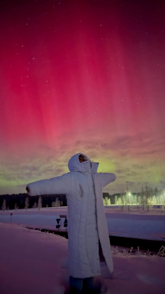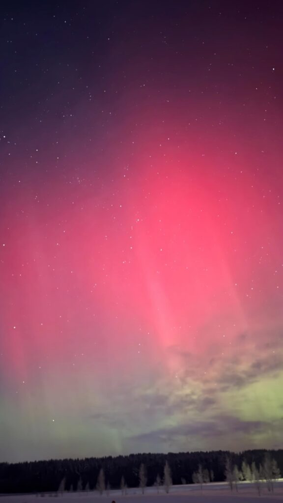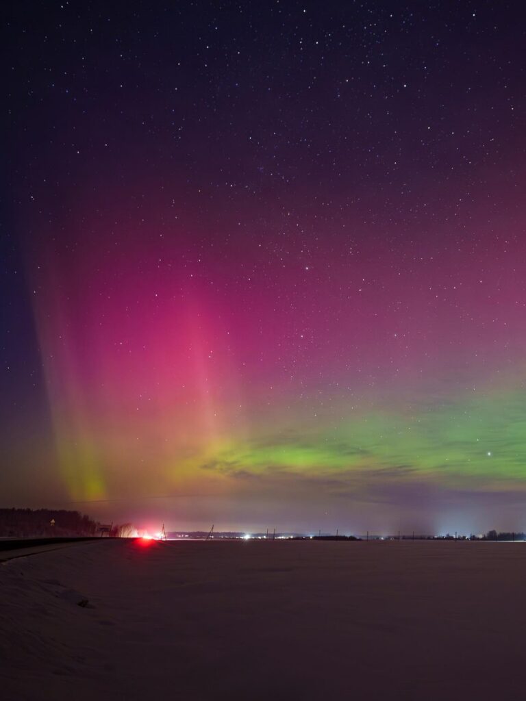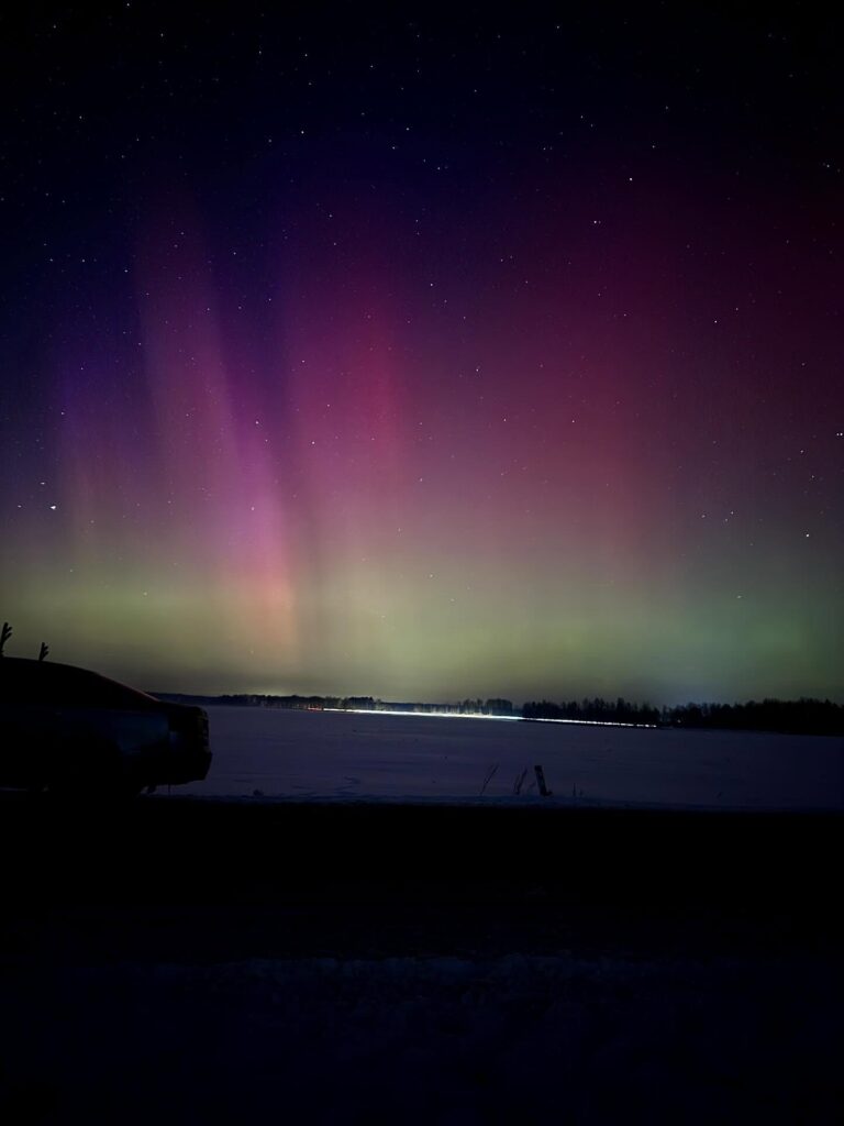 Многие энтузиасты отправились на поиски лучшего обзора. «Сначала приехали на Минское, огорчились что не увидели хотя бы кусочек северного сияния, узнали по карте что оно по направлению Молодечно и поехали туда», — поделилась другая девушка, приложив завораживающие кадры из Заславля.