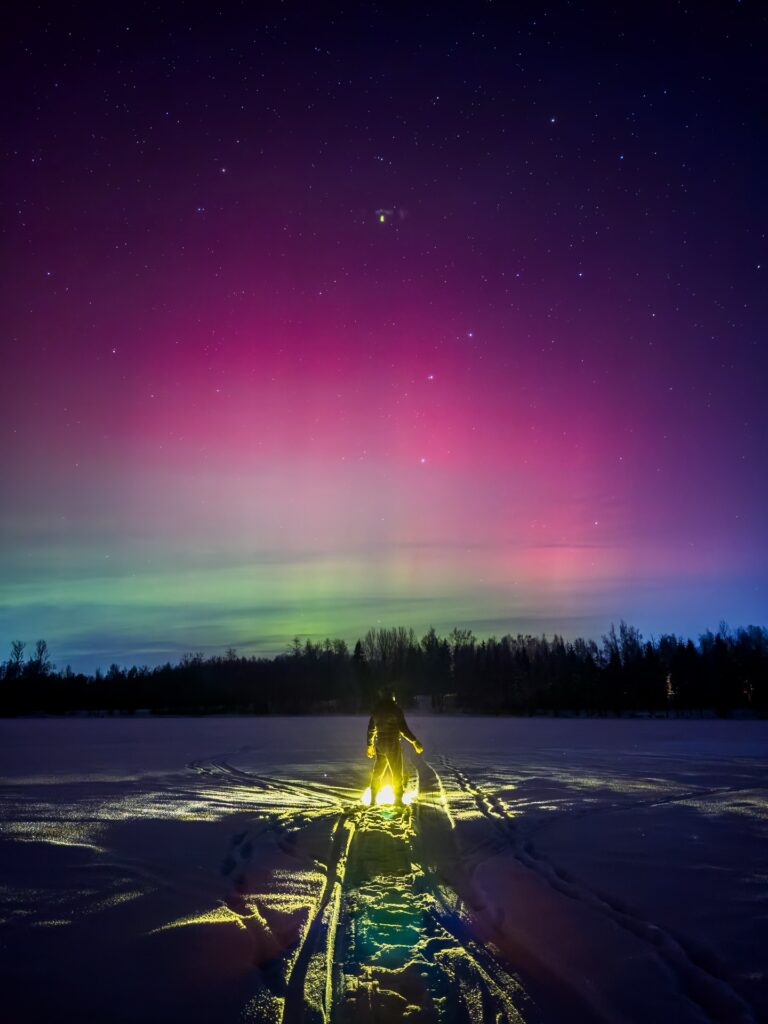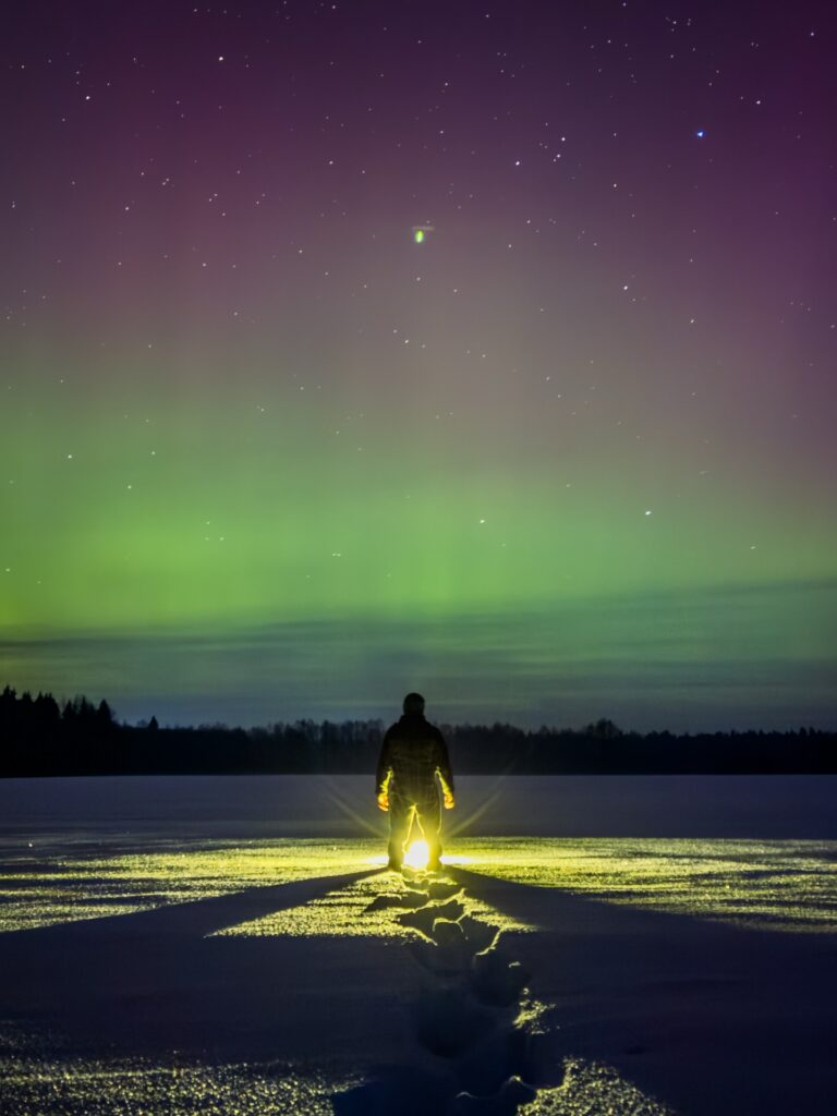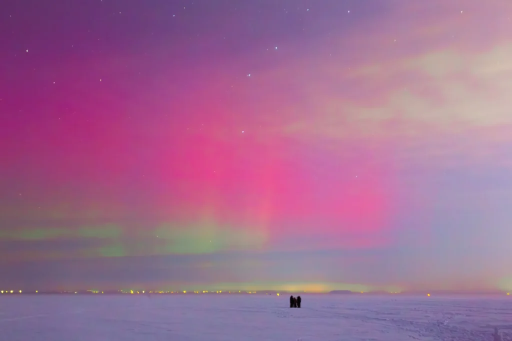 Напомним, полярное сияние — это свечение верхних слоев атмосферы, вызванное взаимодействием магнитосферы с заряженными частицами солнечного ветра.