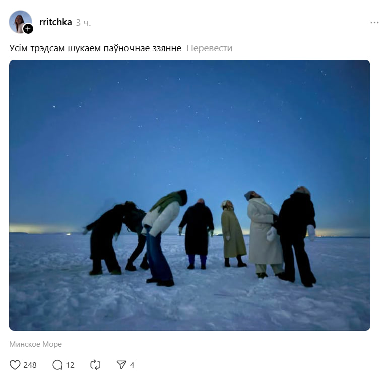 Явление вызвало ажиотаж в социальных сетях. В Threads сообщали, что около 23 часов на 5-м пляже Минского моря было сложно найти место для парковки. «Все смотрят сияние и многие наивно полагают, что оно видно невооружённым глазом. А потом уходят, разочарованно вздыхая», — написала одна из пользовательниц.