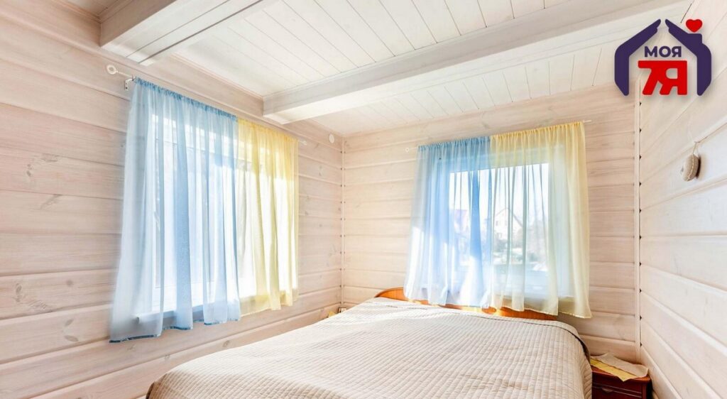 Строение стоит на высоком фундаменте, что обеспечивает прекрасный обзор из комнат. Окна выполнены из ПВХ, а крыша покрыта ондулином, что делает дом более устойчивым к атмосферным воздействиям. Фронтоны также были дополнительно заделаны.
