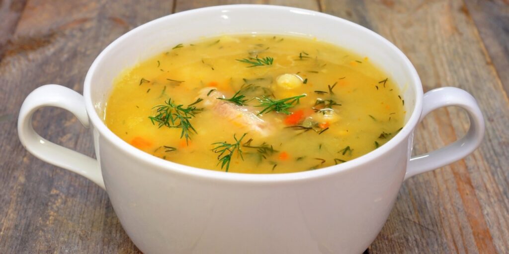 8. За 5 минут до окончания готовки добавьте в суп мелко нарубленный чеснок и укроп. Дайте настояться под крышкой.