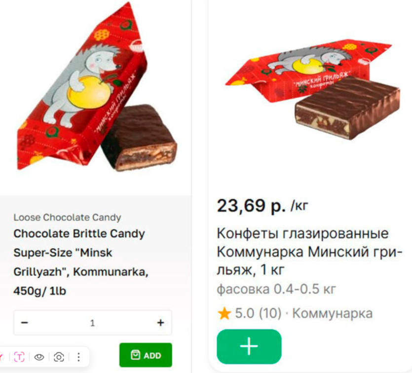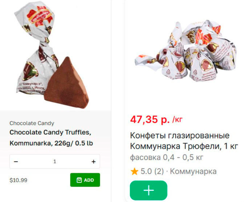 В Беларуси эти конфеты можно купить за 30,89 BYN, что делает местную цену более чем в три раза ниже.