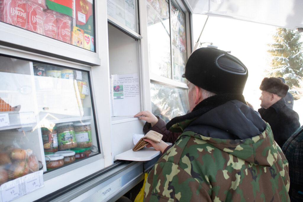В морозном воздухе раздается несколько гудков — это сигнал сельчанам, что приехала автолавка. Тут же собираются местные жители. Их немного, не наберется и 10 человек, но они покупатели, чьи интересы важны для Белкоопсоюза.