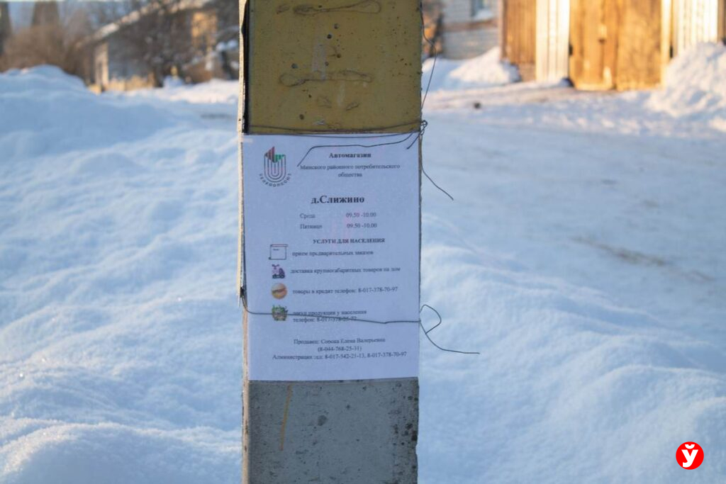Деревня Слижино расположена в 23 километрах от райцентра, ближайший стационарный магазин находится в соседних Янушковичах. До него несколько километров пути, которые не то что зимой, но и летом под силу не каждому пожилому человеку.