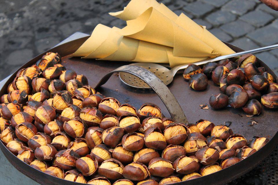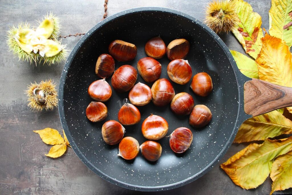 Жареные каштаны — классика. Достаточно сделать надрез, обжарить или запечь, и получится сладковатая закуска.