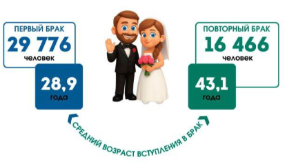 В 2024 году свой союз официально зарегистрировали 46 242 человека. Важно отметить, что для 29 776 из них этот брак стал первым. Это говорит о том, что молодые люди не спешат с созданием семьи, подходят к этому вопросу вдумчиво и серьезно. Подтверждает этот тезис и средний возраст вступления в первый брак — 28,9 лет. Современный белорус женится, уже имея за плечами определенный жизненный опыт, образование и, что немаловажно, твердую позицию в обществе. Это осознанный шаг зрелого человека, готового взвалить на себя ответственность за супругу и будущих детей.