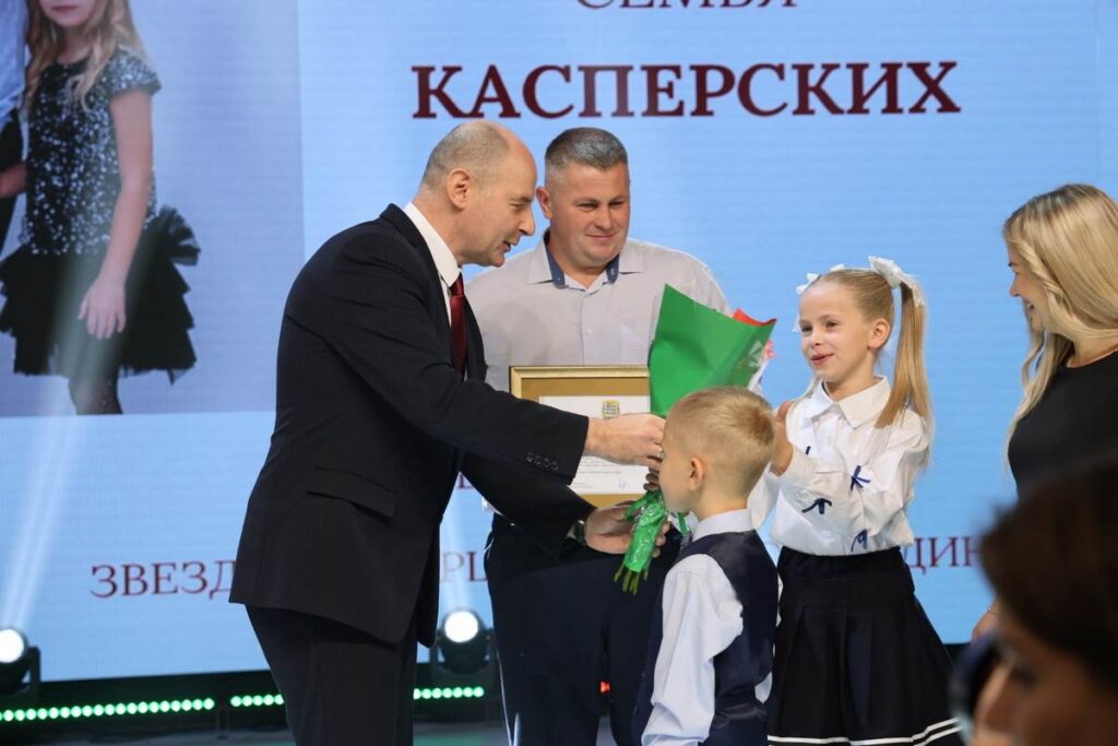 После творческих выступлений на сцену поднялся Алексей Кушнаренко. Он поприветствовал семьи Минской области, отметив, что все они стали участниками уникального события.