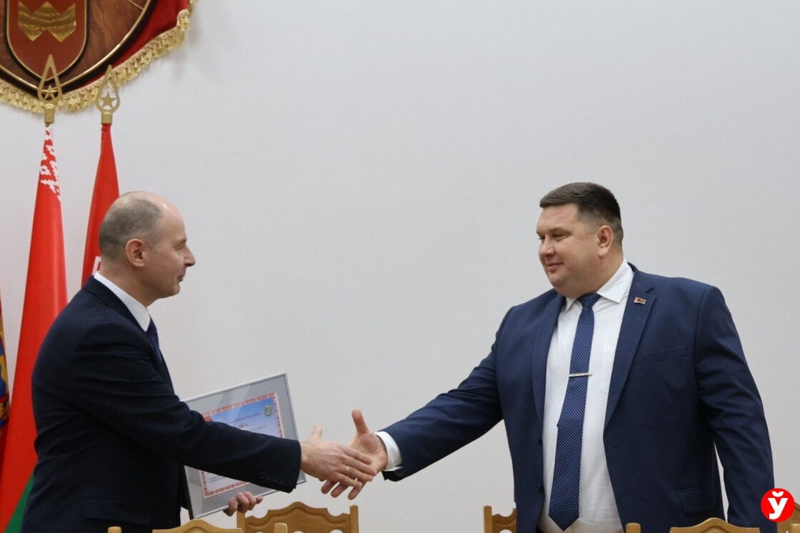 Последний раз в зале в качестве председателя Воложинского райисполкома присутствовал Евгений Крукович. Как признание его заслуг — Благодарность председателя Миноблисполкома.