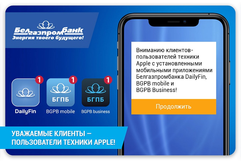 не удалять уже установленные на устройства Apple мобильные приложения DailyFin, BGPB mobile и BGPB Business