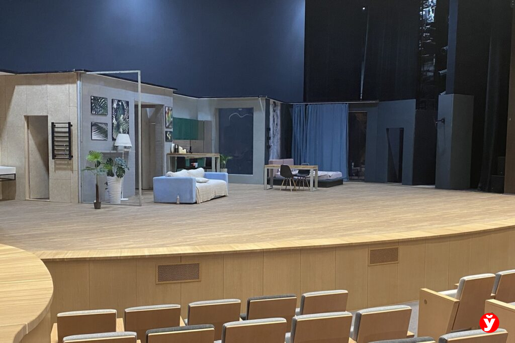 Большой зал впечатляет масштабом и акустикой: мягкие кресла, глубокая сцена, свет, который буквально рисует настроение каждой постановки. Взгляд неизменно притягивают тарелки на стенах, они отражают звук и напоминают чешую рыбы.
