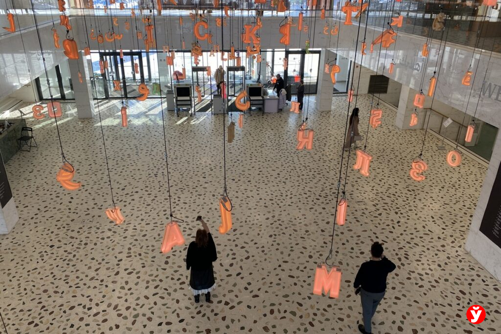 Внутри — свет, дерево, стекло и ощущение простора. Сразу при входе читателей и гостей Татарстана встречает эффектная световая инсталляция на потолке. Она состоит из светящихся мягким светом объемных букв из алфавитов разных народов. Рассыпавшийся алфавит, словно завис в воздухе. Туристы останавливаются здесь не только ради фото: в этой игре света и шрифта чувствуется уважение к слову, как к основе культуры. Именно по фотокарточкам с этой инсталляцией узнают Казанскую национальную библиотеку в разных странах мира. Иногда здесь гасят свет, зажигают тысячи свечей и проводят вечера классической музыки.